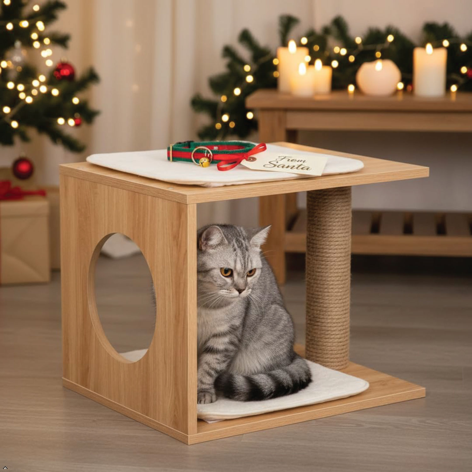 The integrated tree structure allows cats to climb, stretch, jump, and explore. This promotes physical activity, helps prevent boredom, and supports overall health. It’s especially beneficial for indoor cats that need stimulation and movement throughout the day.