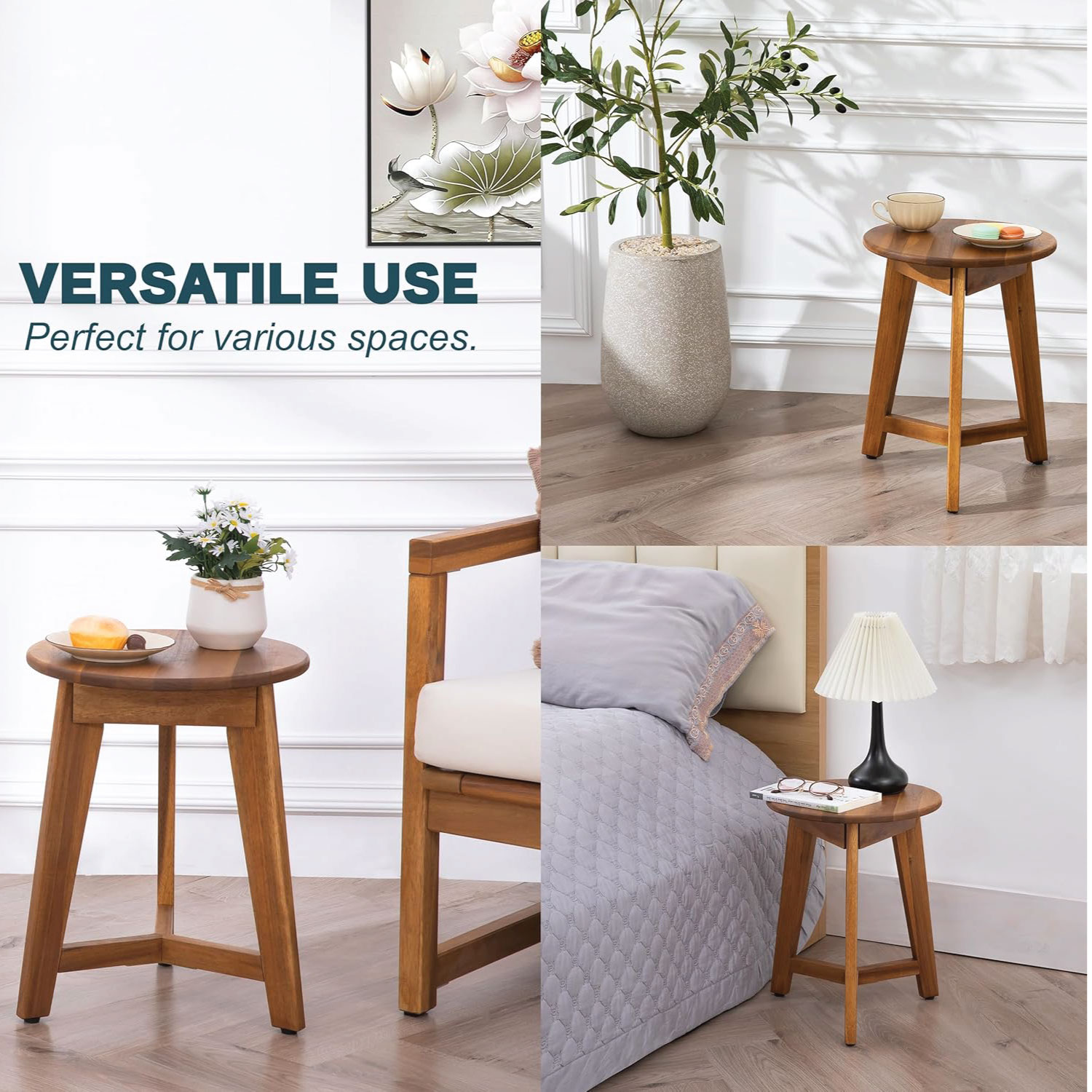 Designed for versatility, the Flora Side Table works beautifully in living rooms, bedrooms, balconies, terraces, or covered outdoor areas. Its practical design makes it suitable for everyday living as well as entertaining guests.