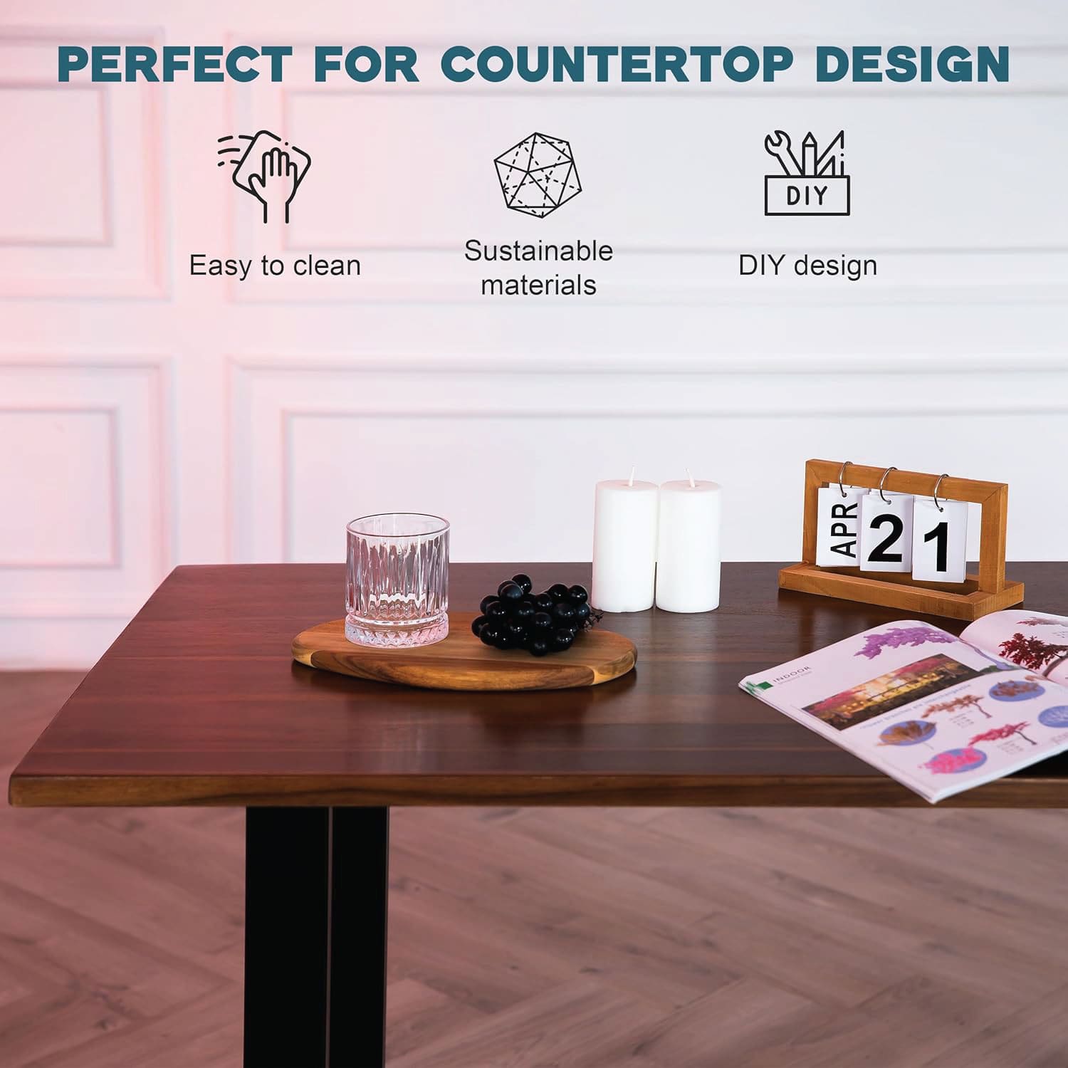 This unfinished countertop offers endless customization possibilities. You can easily apply your choice of finish, stain, or sealant to enhance the natural beauty of the Hevea wood and match it to your kitchen, office, or craft room décor. Express your style with a personalized look that suits your needs.